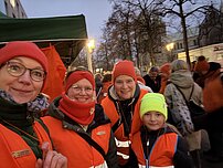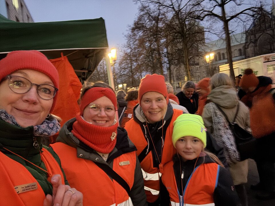 Um 17.00 Uhr findet auf dem Prinzipalmarkt ein Flash Mob statt – eine kurze, eindrückliche Aktion, die ohne offizielle Bewerbung auskommen muss. In orange gekleidet zeigen Teilnehmende das „Internationale Hilfezeichen“ und machen Passantinnen und Passanten durch Trillerpfeifen und Infokarten auf diese stille Form des Hilferufs aufmerksam. Schulen, die sich bereits an der Brötchentütenaktion beteiligen, sind ebenfalls eingeladen, mitzuwirken.
